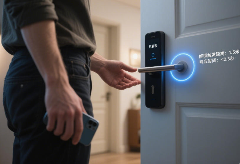 飛睿智能UWB標(biāo)簽?zāi)=M憑借其卓越的性能和創(chuàng)新的技術(shù),成為了行業(yè)內(nèi)的佼佼者,為眾多應(yīng)用場景提供了高精度、高可靠性的解決方案。?UWB標(biāo)簽?zāi)=M正悄然改變著人們與設(shè)備的交互方式,帶來前所未有的便捷體驗(yàn)。?在智能家居場景中,無感解鎖功能讓生活更加便捷。當(dāng)用戶攜帶UWB標(biāo)簽產(chǎn)品靠近智能門鎖時(shí),在1米內(nèi)即可自動觸發(fā)檢測,確認(rèn)用戶身份后可自動解鎖。